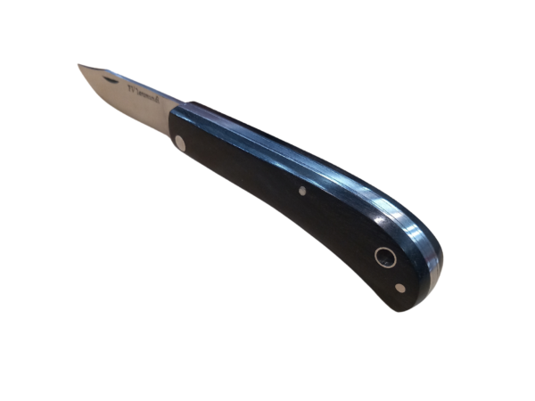 Navaja artesana de ebano natural con cierre de pistón, hecha a mano por el artesano Francisco Vega en Taramundi (Asturias). Navaja elegante y fuerte, perfecta para trabajar con ella o para una divertida comida con amigos.