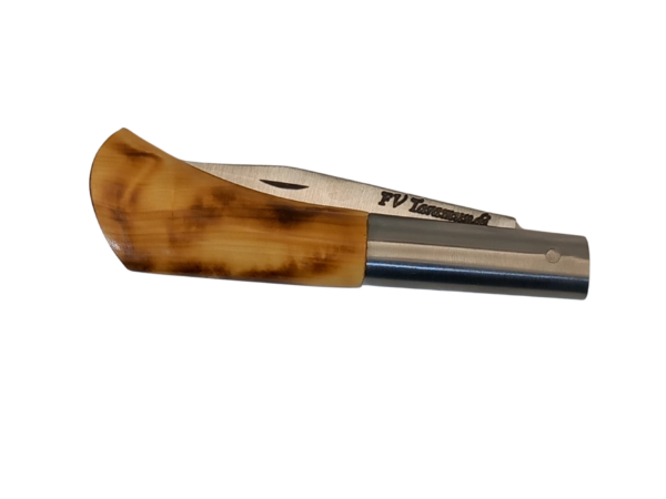 Navaja de madera de boj natural quemado (punta vuelta) elaborada de forma artesanal por el artesano Francisco Vega en Taramundi (Asturias). Navaja ideal para los amantes de la madera y de la naturaleza.