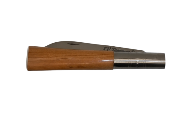 Navaja de madera de cerezo elaborada de forma artesanal por el artesano Francisco Vega en Taramundi (Asturias). Navaja ideal para los amantes de la madera y de la naturaleza.