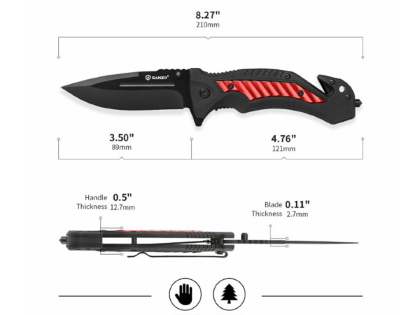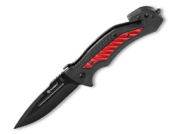Navaja tipo rescate con cortacinturones y rompecristales, clip de sujeción ,agujero para cordón fiador y apertura por flipper o tetón