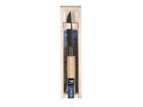 El acabado BLACK en la hoja y la virola se obtiene gracias a un tratamiento superficial específico (recubrimiento PVD) que permite reforzar su resistencia a la corrosión. El mango de roble procedente de los bosques franceses y está protegido con barniz.