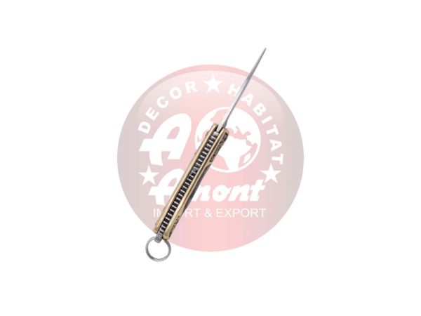 Navaja Miniatura Third modelo N89-7 hoja de acero 420 acabado brillo espejo de 2,9 cm, mango con virolas de latón e inserción de abulón, con caja de presentación.